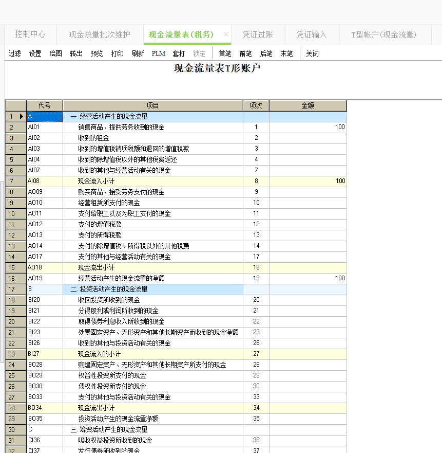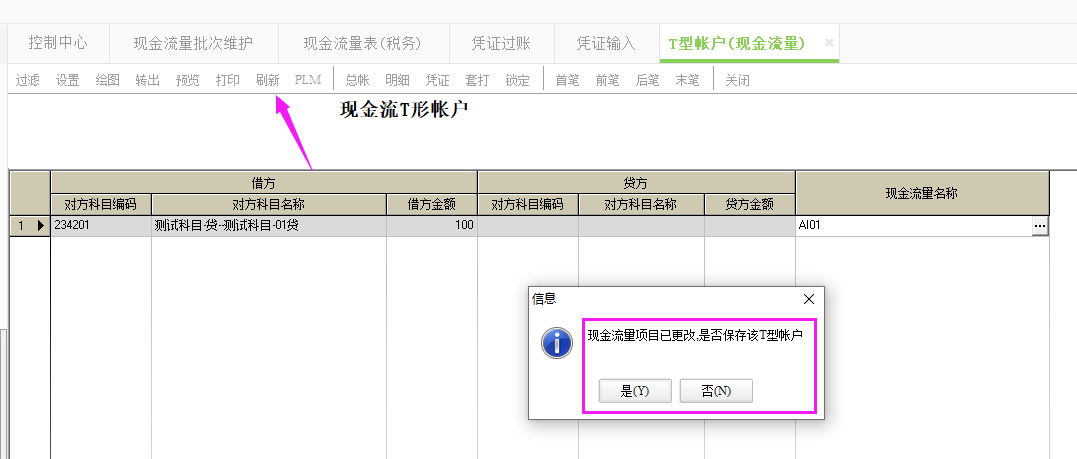 1、在“現金流量T形帳戶”這個作業中過濾出數據,并指定好現金流量項目。指定好現金流量項目以后點擊刷新會提示是否保存,點擊是即可。 2、操作完上述操作以后就可以直接在“現金流量表T形帳戶”這個報表中制表出數據 |