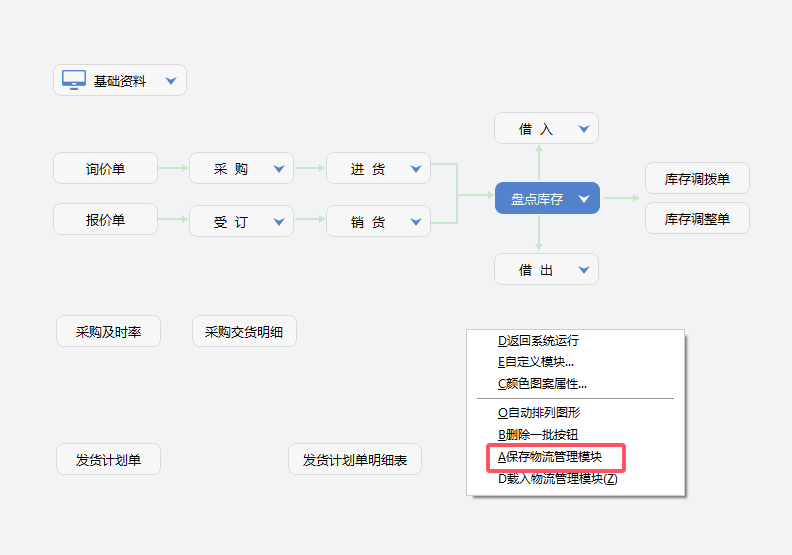 一、T系列:1)、選中工作流程圖模塊,在空白地方鼠標(biāo)右鍵點(diǎn)擊進(jìn)入模塊設(shè)計(jì) 2)、在空白地方鼠標(biāo)再次右鍵點(diǎn)擊保存當(dāng)前模塊配置。 3)、工作流程圖模塊的流程圖GCZM保存至桌面。 4)、登錄001用戶,選中工作流程圖模塊,在空白地方鼠標(biāo)右鍵點(diǎn)擊進(jìn)入模塊設(shè)計(jì)。 5)、在空白地方鼠標(biāo)再次右鍵點(diǎn)擊加載配置到當(dāng)前模塊。 6)、選中GCZM模塊流程點(diǎn)擊打開進(jìn)行導(dǎo)入。 7)、鼠標(biāo)右鍵空白位置點(diǎn)擊返回系統(tǒng)運(yùn)行。 8)、保存界面即可。 二、SUNLIKE:1)、選中物流模塊,在空白地方鼠標(biāo)右鍵點(diǎn)擊進(jìn)入模塊設(shè)計(jì) 2)、在空白地方鼠標(biāo)再次右鍵點(diǎn)擊保存物流管理模塊。 2)、登錄001用戶,選中物流管理模塊,在空白地方鼠標(biāo)右鍵點(diǎn)擊進(jìn)入模塊設(shè)計(jì)。 4)、在空白地方鼠標(biāo)再次右鍵點(diǎn)擊載入物流管理模塊。 5)、鼠標(biāo)右鍵空白位置點(diǎn)擊返回系統(tǒng)運(yùn)行。 6)、保存界面即可。 PS:SUNLIKE 的模塊流程圖的路徑D:\Sunlike-365\Template\Model\Gb。 |